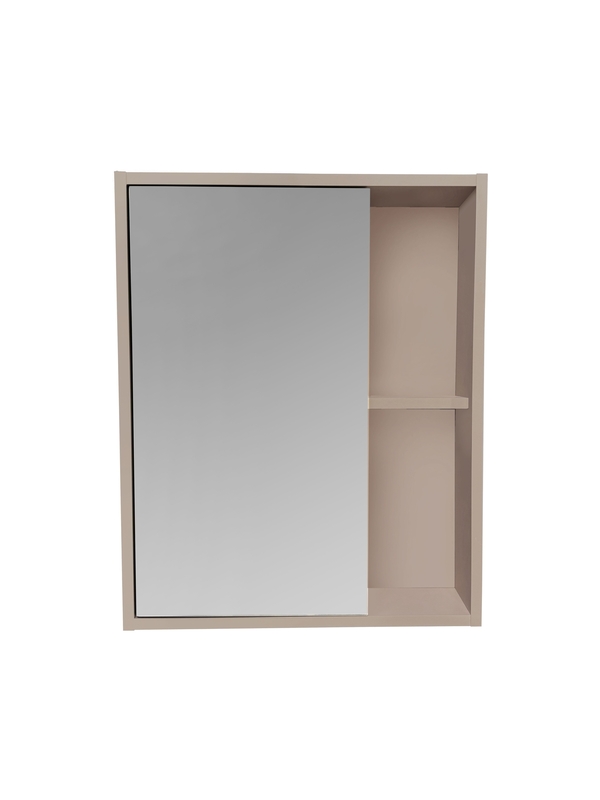 Тумба оснащена двумя распашными дверцами, обеспечивающими удобный доступ к внутреннему пространству. Петли с доводчиками (верхняя петля с доводчиком, нижняя без доводчика) гарантируют плавное и бесшумное закрывание, предотвращая повреждения и продлевая срок службы мебели. Внутри тумбы предусмотрена встроенная полка для оптимальной организации хранения ванных принадлежностей.